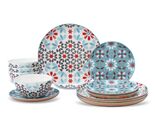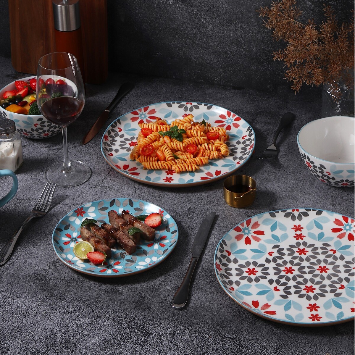 - Lorren Home Trends Floral Bone China Dinnerware Set, 12 Piece Blue Red Gray