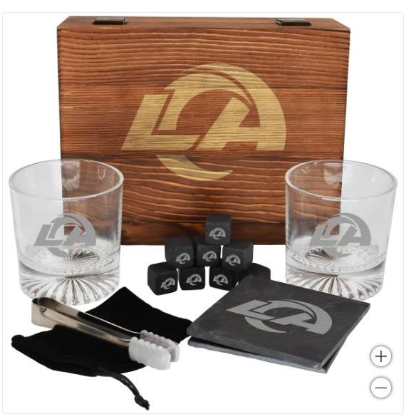 - Los Angeles Rams Drinkware Set Glasses Wood Box Coasters Cooling Cubes NFL