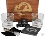 Los Angeles Rams Drinkware Set Glasses Wood Box Coasters Cooling Cubes NFL