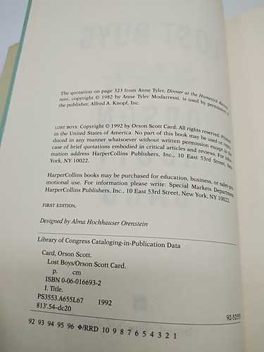 - Lost Boys A Novel Orson Scott Card Hardcover Book