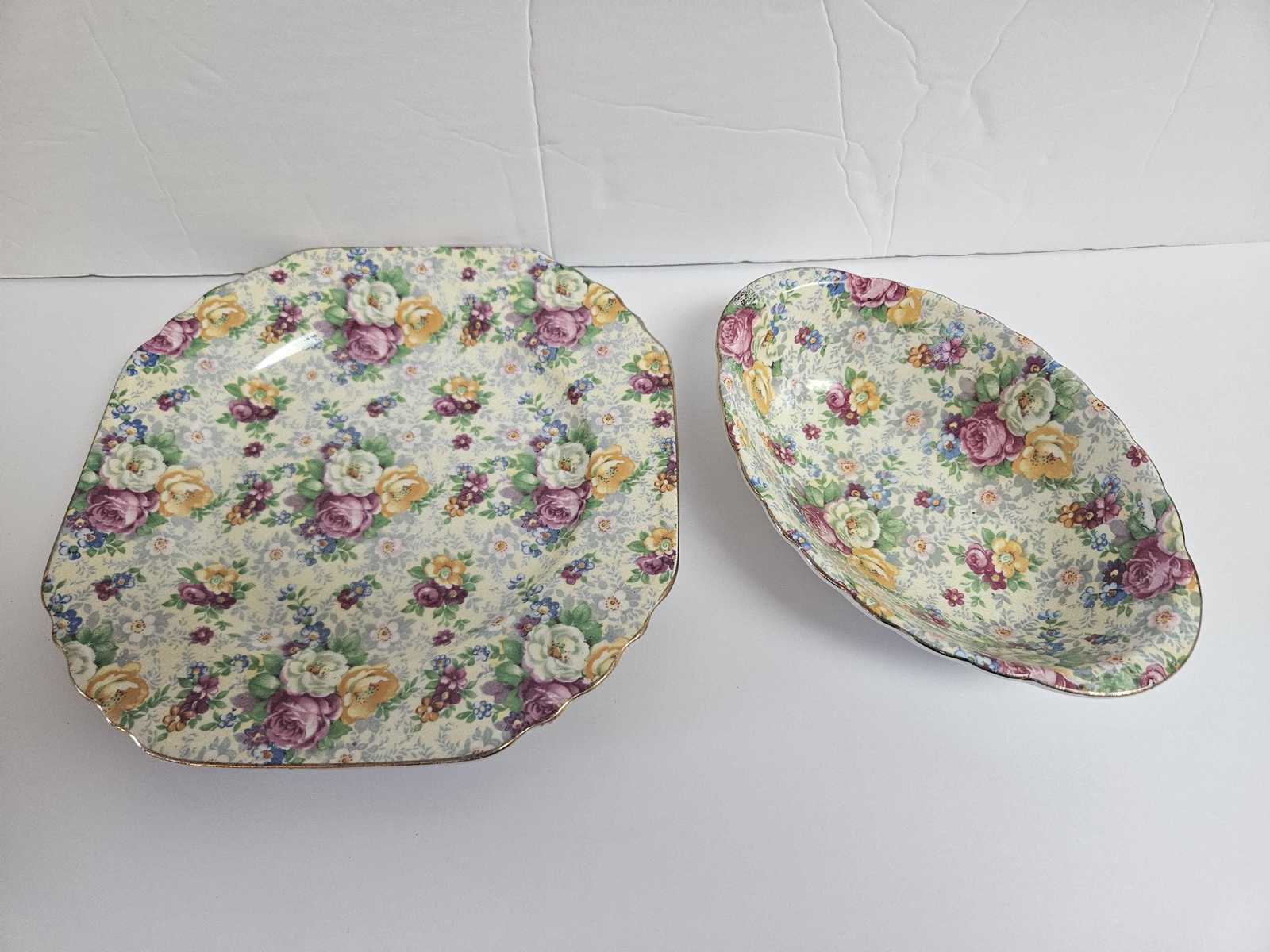 - Lot 1930s Lord Nelson Ware Chintz Rose Time Salad Plate & Nut Dish England