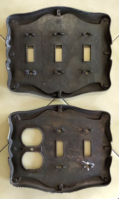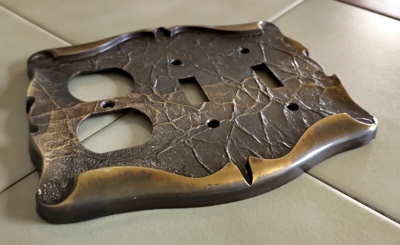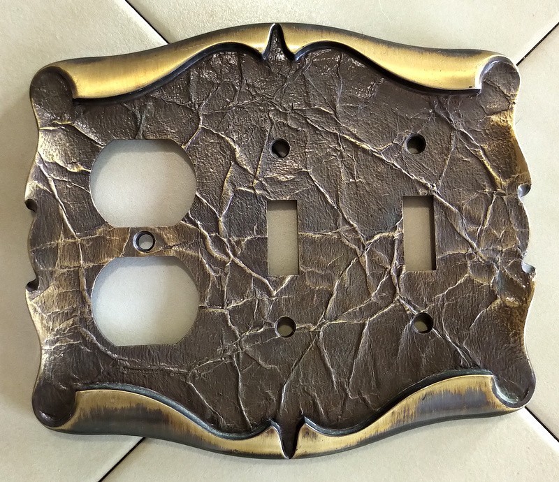 - Lot (2) Antique Gold Carriage House Triple Light Switch / Outlet Plate Covers