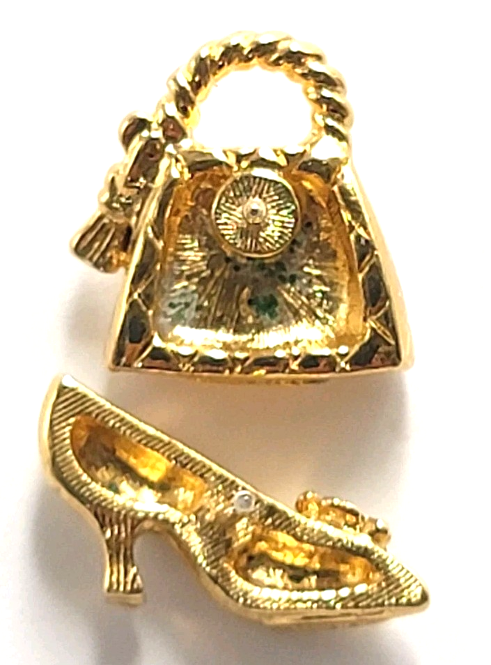 - Lot 2 Gold Tone Purse and High Heel Shoe Fashion Pins Pearl Rhinestone Accents