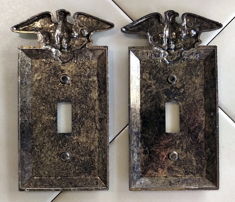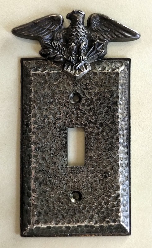 - Lot (2) Vintage Hammered Metal American Eagle Single Light Switch Plate Covers