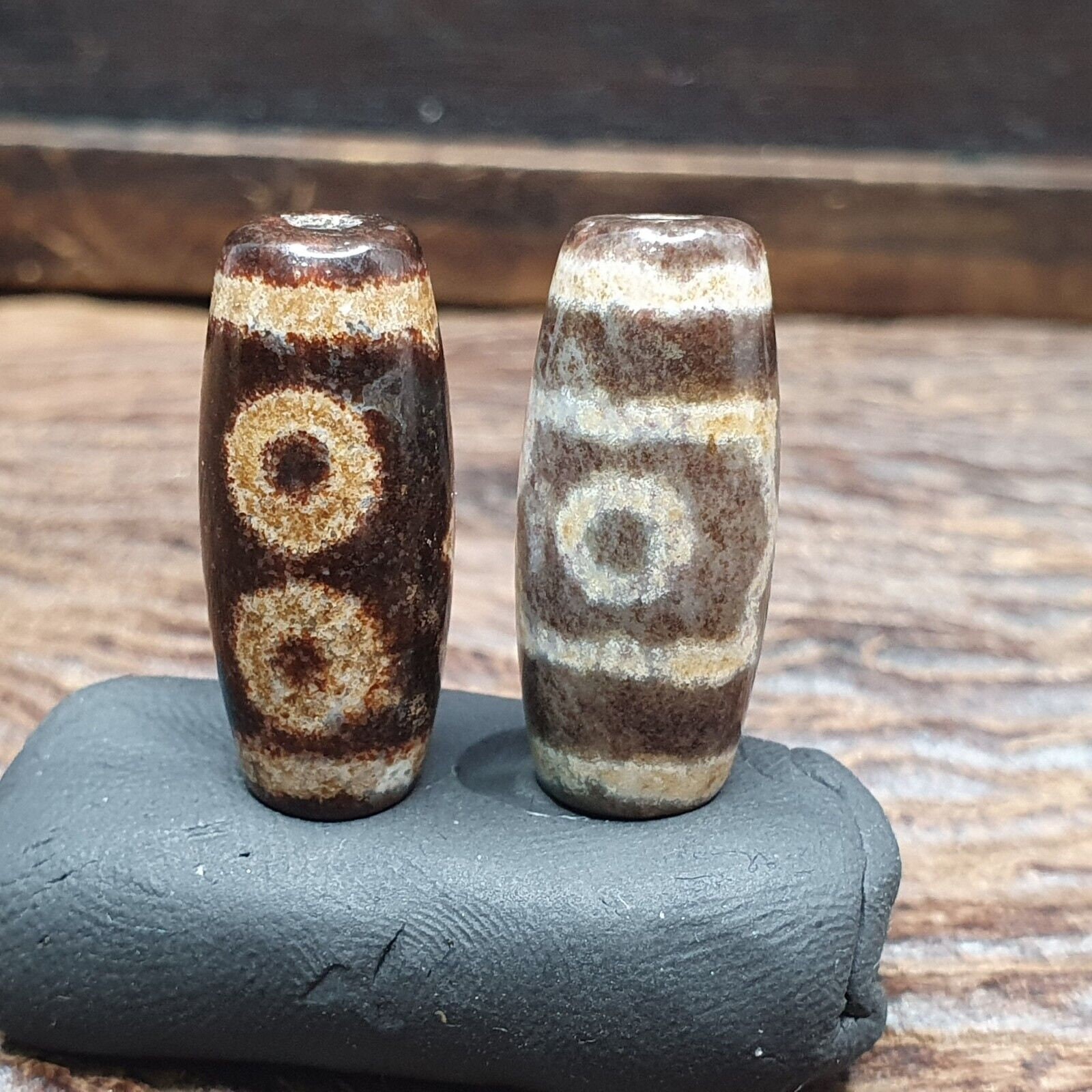 - Lot 2 Ösen Perle Tibetische Dzi Perle Alt Amulett Achat Tibet Gzi Anhänger...