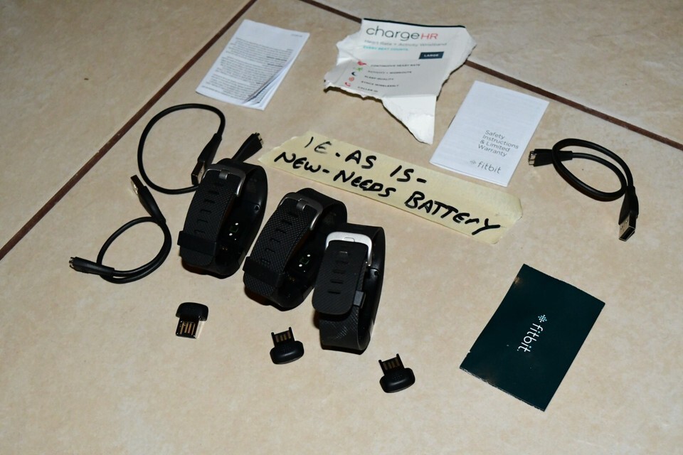 - lot 3 Fitbit Charge HR Large Activity Wristband - Black- NEEDS BATTERY AS IS 1e