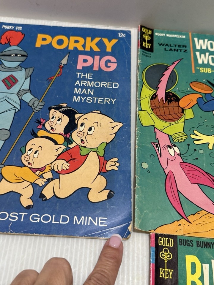 - Lot 4pc Gold Key Comics Porky Pig, Woody Woodpecker, Bugs Bunny, Little Monsters