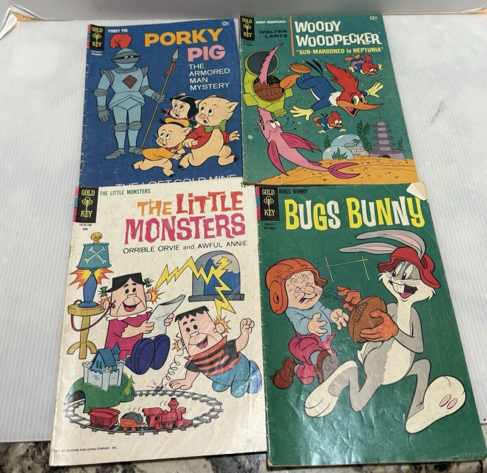 Lot 4pc Gold Key Comics Porky Pig, Woody Woodpecker, Bugs Bunny, Little Monsters