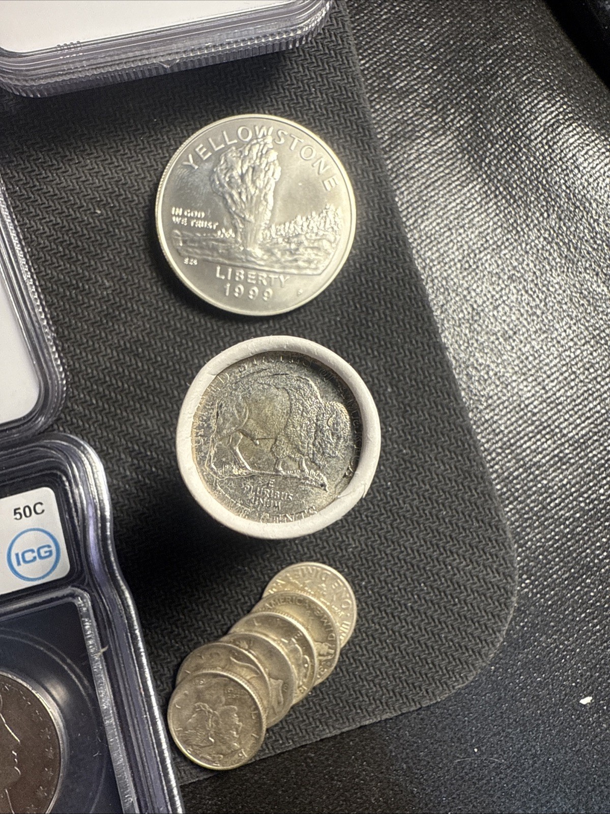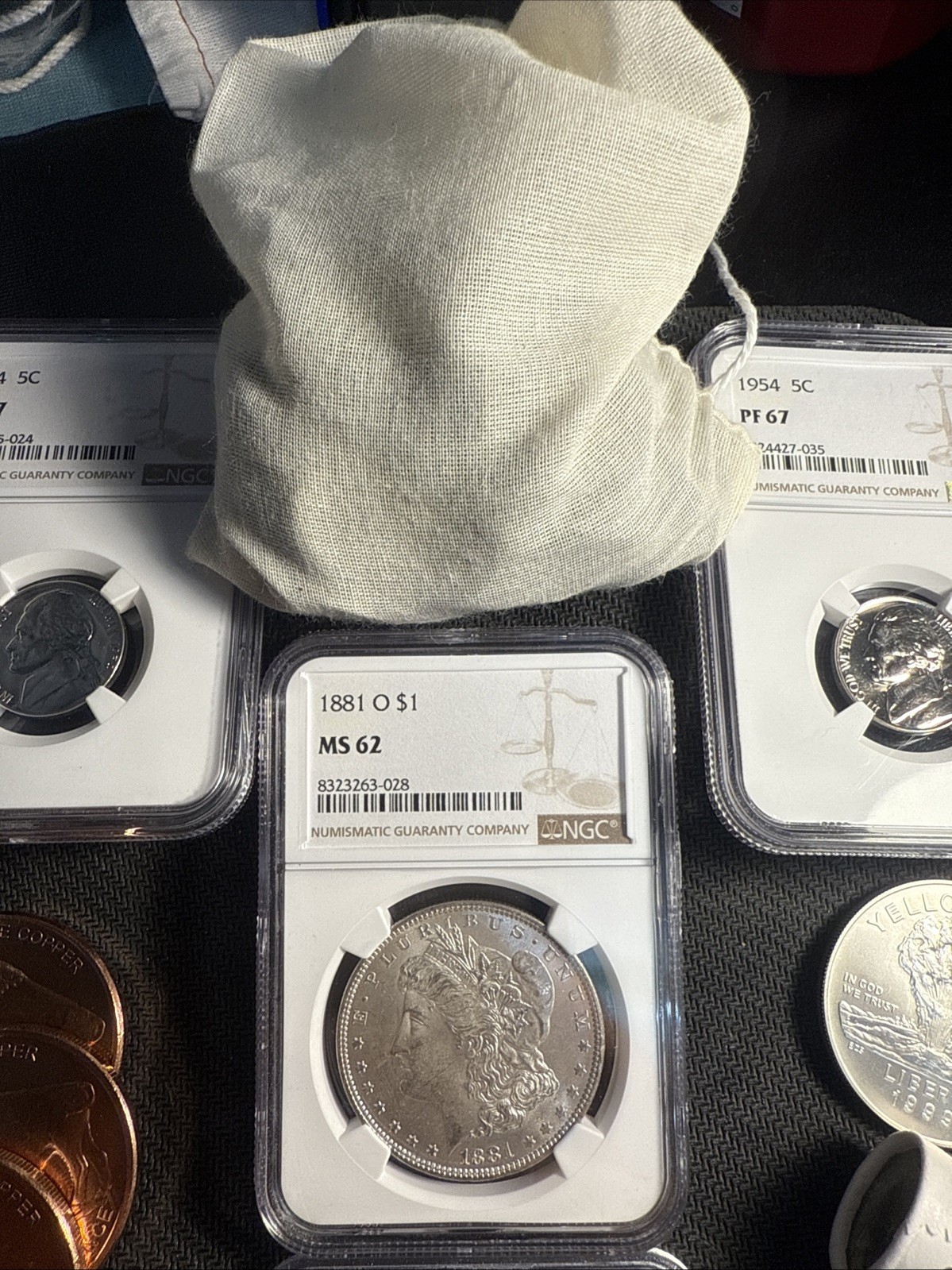 The product being advertised is a collection of coins, including slabs, mercury dimes, silver coins, and 1+ pound of wheat pennies. These coins have various denomination and some are composed of silver. The slabs are certified by NGC and ICG. The offer aims to entice collectors to start their collection with a variety of coins from different regions, compositions, and themes, providing a diverse and potentially valuable assortment for enthusiasts looking to expand their collection.