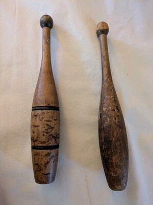 Lot De 2 Ancien 16 IN Bois Cirque Jonglage Broches Exercice Primitive Poids Club