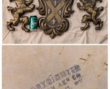 Lot De 3 1960s Art Moderne Co Lion Blason Chalkware Mcm Décoration Murale Plaque