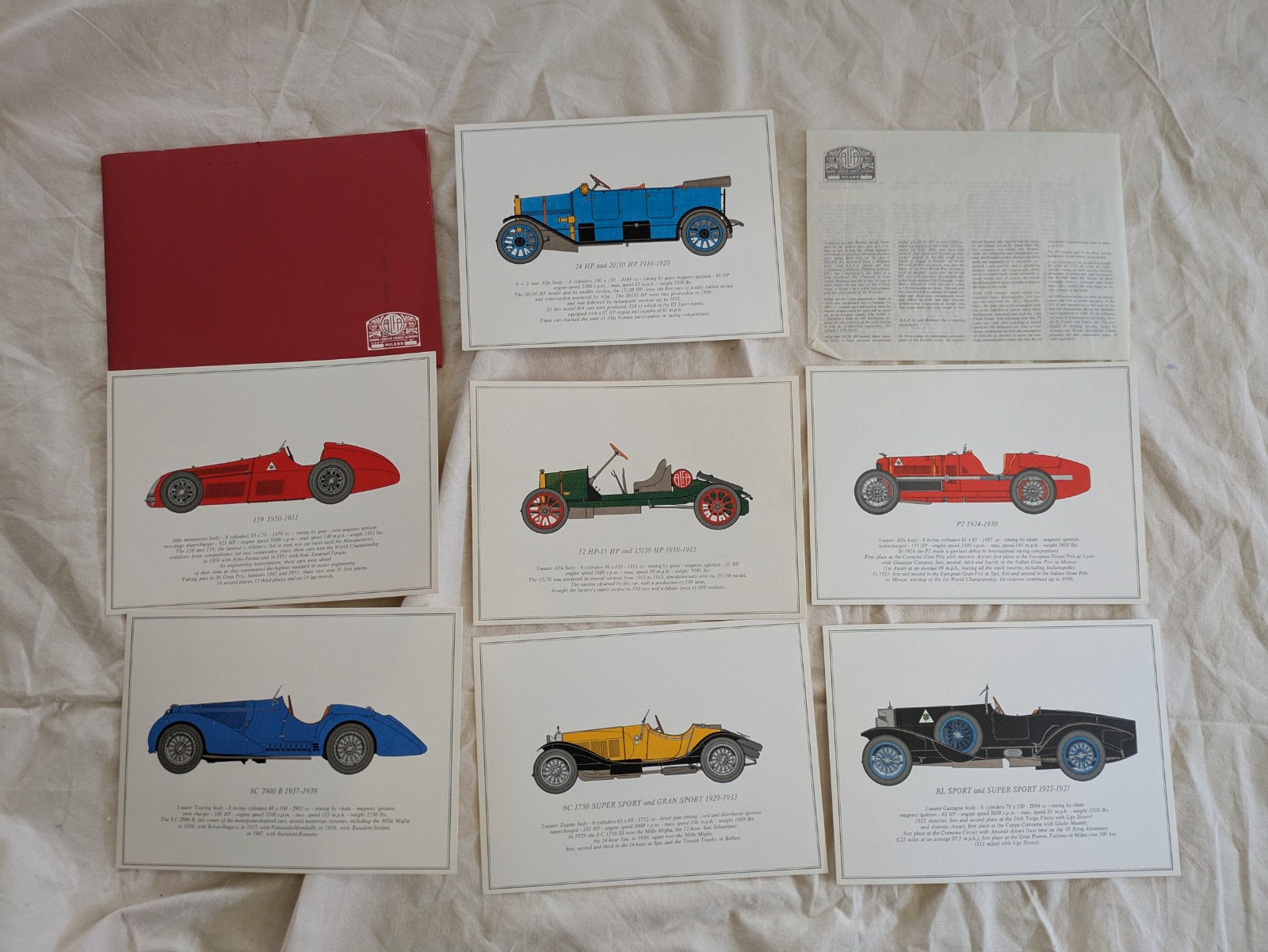- Lot Ff 7 Alfa Romeo Milano SPORTS Voiture Art Imprimés Folio 12 X 9 IN Italie