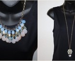 - Lot Light Off-white Blue Necklace Gold Tone Dangle Pendant Chandelier Floral