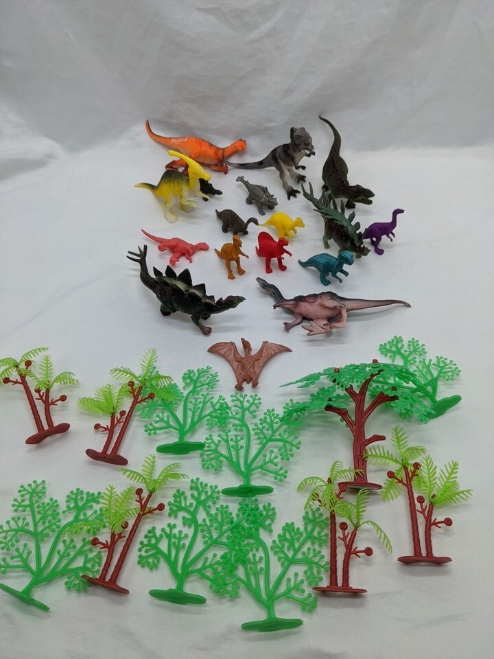 - Lot Of (17) Dinosaur Toys Trex Stegasaurs Pterodactyl With (12) Trees 2-4"