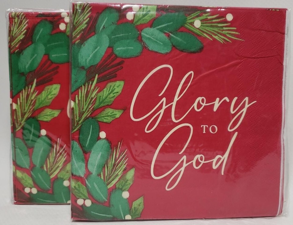 Lot Of 2 Design Studio Glory To God Christmas Napkins - Red 100 Count