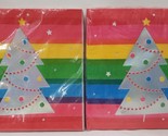 Lot Of 2 Holiday Time Rainbow Stripe Silver Christmas Tree Deco Lunch Napkins