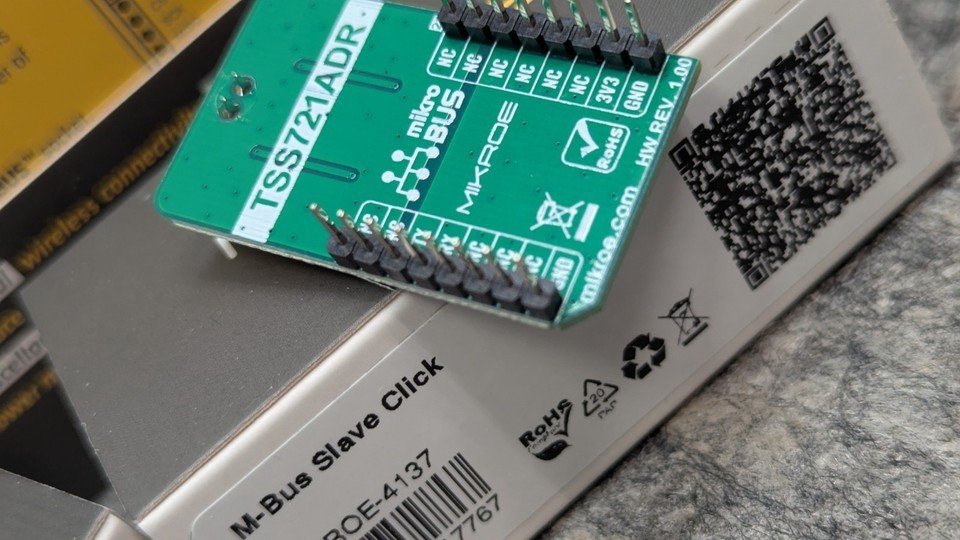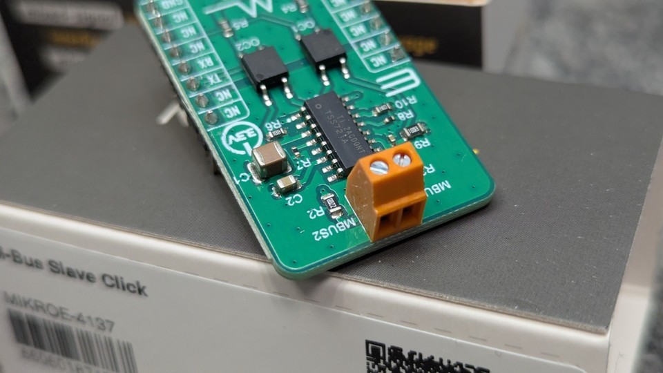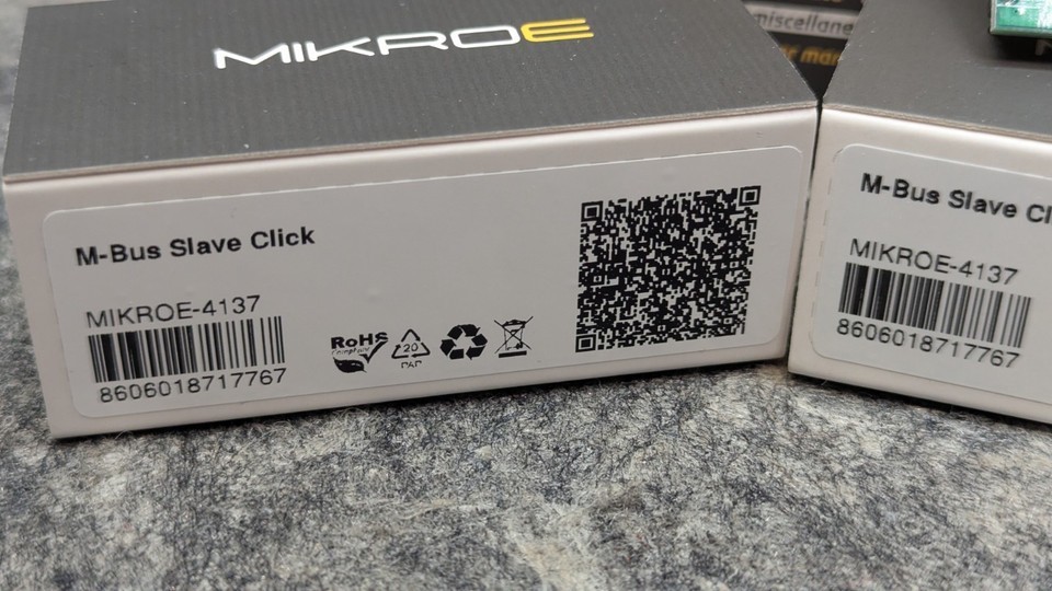 Lot of 2 Brand new and unused MIKROE M-Bus Slave Click (MIKROE-4137). Only taken out to check its condition and for pictures. No damage to it as shown in the pictures.