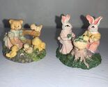 Lot Of 2 Vintage Easter Decorations Bunnies & Bear With Chicks
