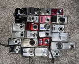 The product being described is a lot of 25 digital cameras from various brands like Nikon, Olympus, and Sony. These cameras are compact in size and designed for use with digital technology. They are being sold for parts, indicating that they may have issues that prevent them from being used as functional cameras. This lot is ideal for individuals or businesses looking to repair or salvage parts from digital cameras.