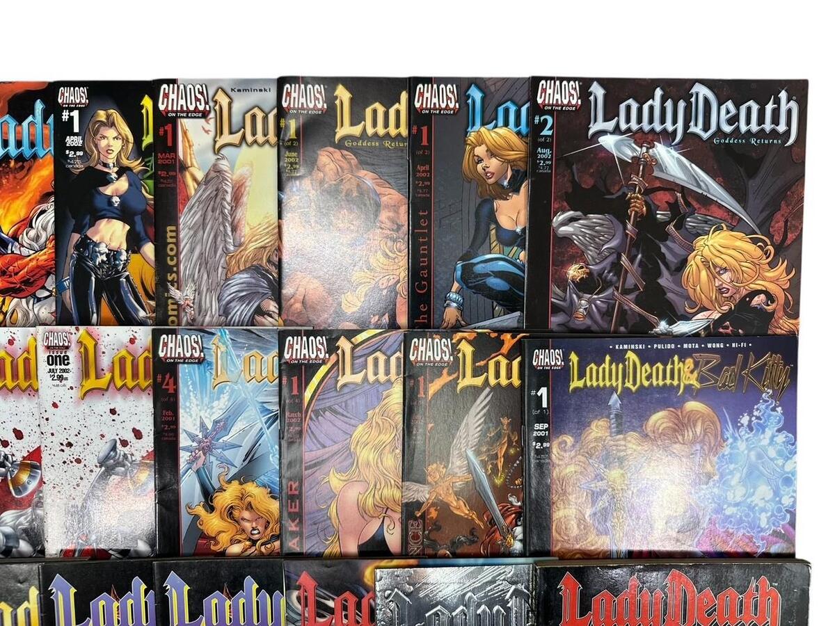 Lot of 27 LADY DEATH Comic Books One book has some damage to the cover / spine and there are 3 duplicates Please note that we are not professional graders so we tried to take some pictures to show you the condition Comes as shown