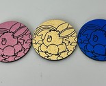 The product is a set of three Pokemon TCG coins featuring the characters Sylveon and Eevee in their Evolutions forms. Manufactured by Nintendo, the pink-colored coins are in English and belong to the year 2025. These collectible coins are a unique addition to any Pokemon TCG collection, showcasing the evolution of beloved characters in the popular trading card game.
