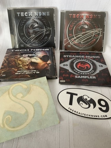 - Lot of 4 Tech N9NE CDs 2 AUTOGRAPHED Sampler and Stickers Strange Music