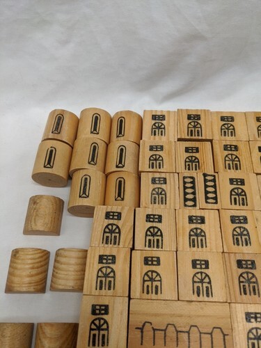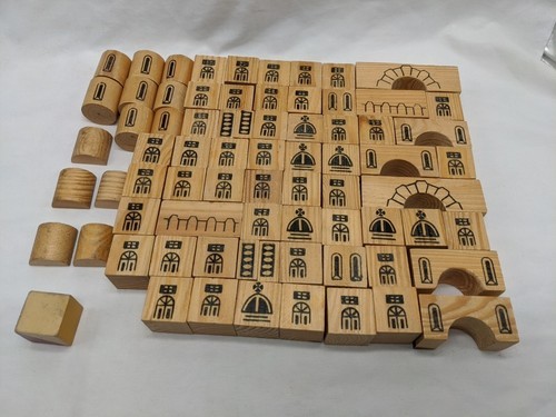 - Lot Of (65+) Wooden Building Block Toys Windows Pillars Arches Bridges Fence