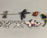 - Lot Of 7 Vintage Brooches - Dragonflies, Mouse, Butterflies And Parrot