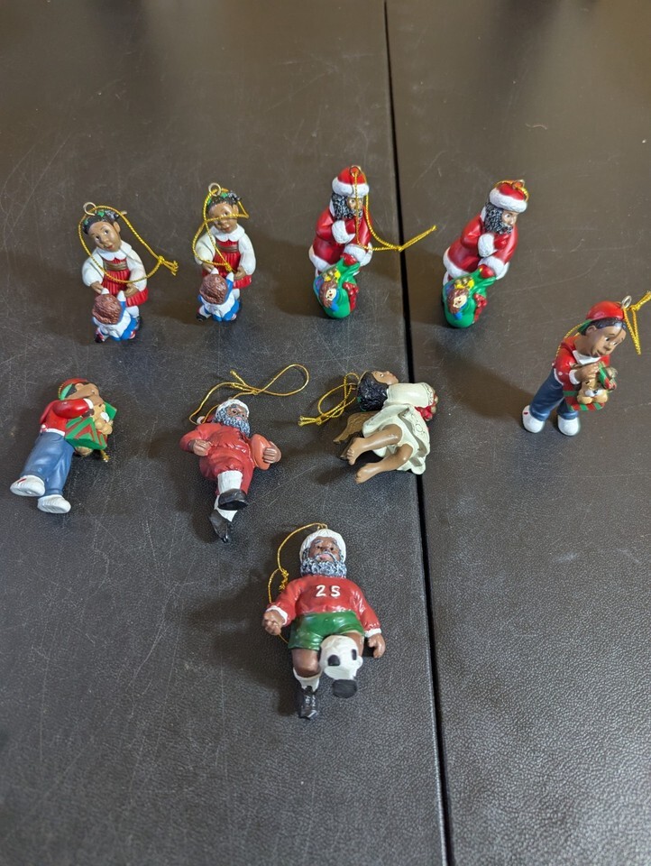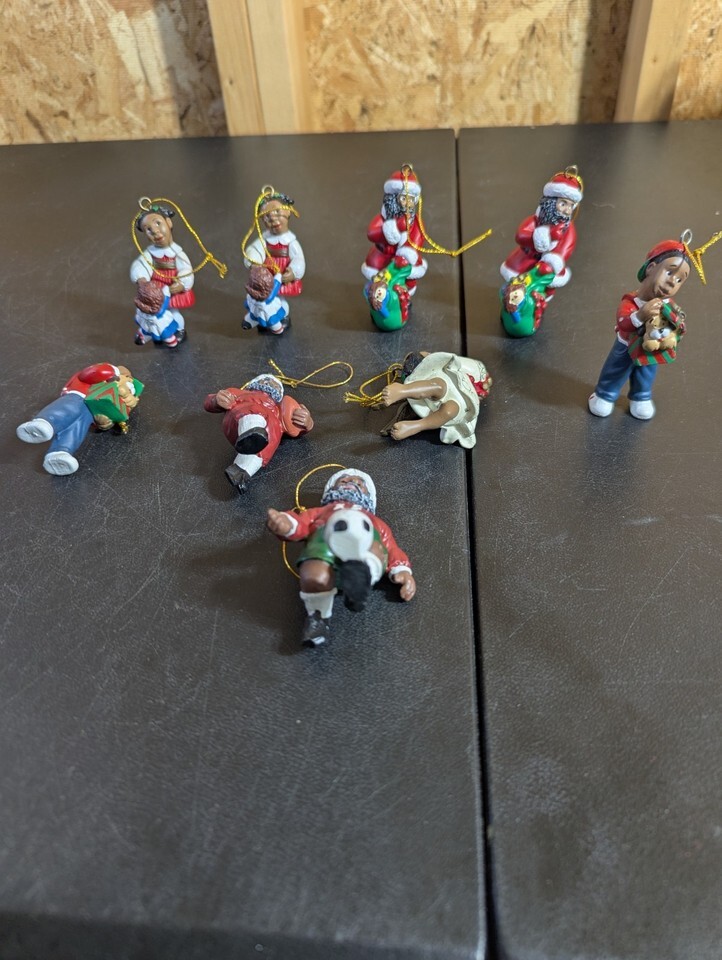 This lot of 9 Hallmark Keepsake Ornaments from 1998 features a vintage collection of small multicolor resin ornaments perfect for Christmas. Each ornament in the set includes various festive designs related to the holiday theme. Manufactured by Hallmark in the United States during the 1990s, these ornaments are a nostalgic addition to any holiday decor.