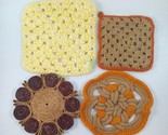- Lot Of Four : 3 Handmade Crochet Knit Hot Pads + 1 Woven Grass Trivet