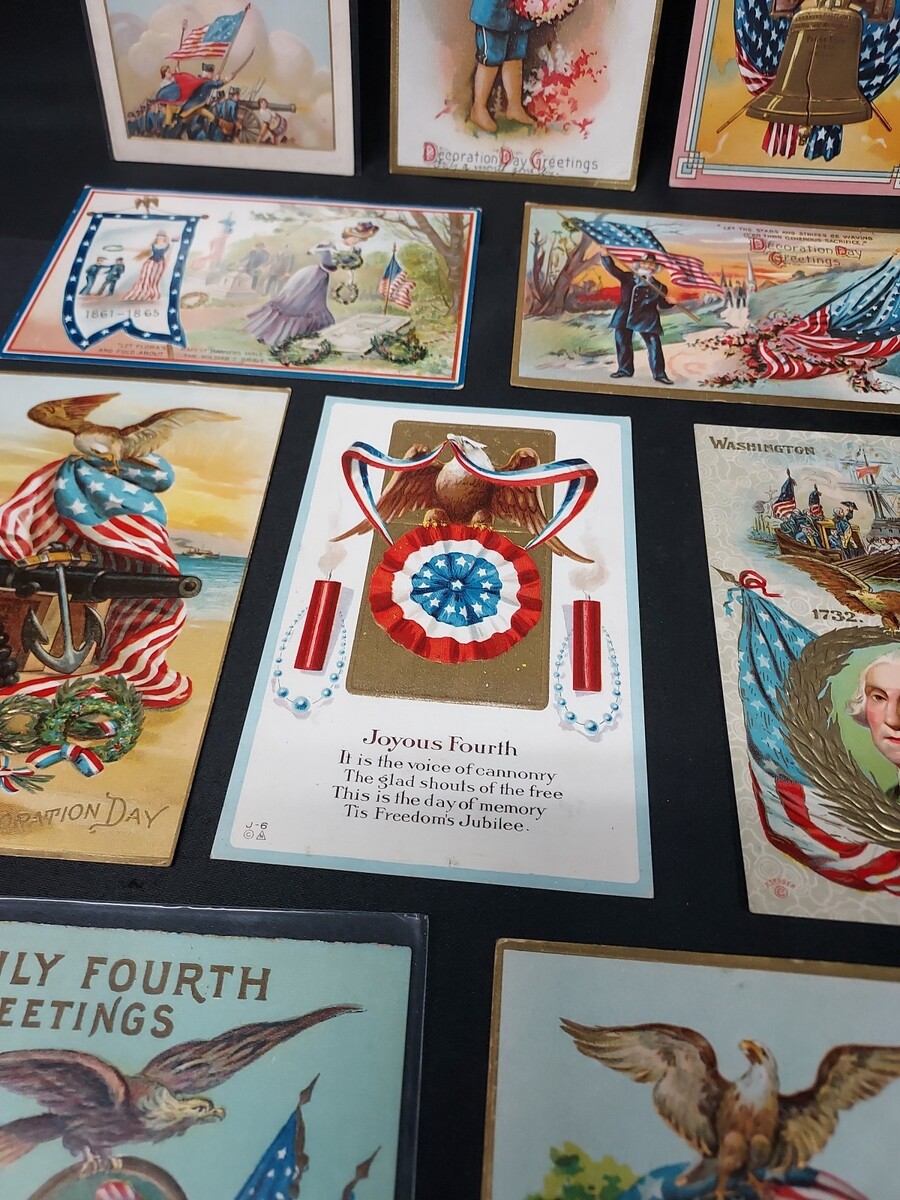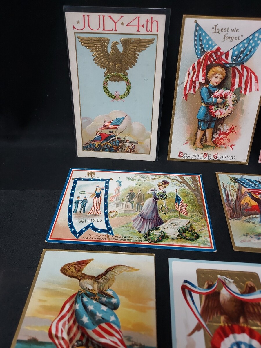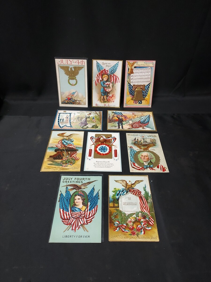 - Lot of 10 Early 1900s Military, Patriotic, American, Flag Embossed Postcards