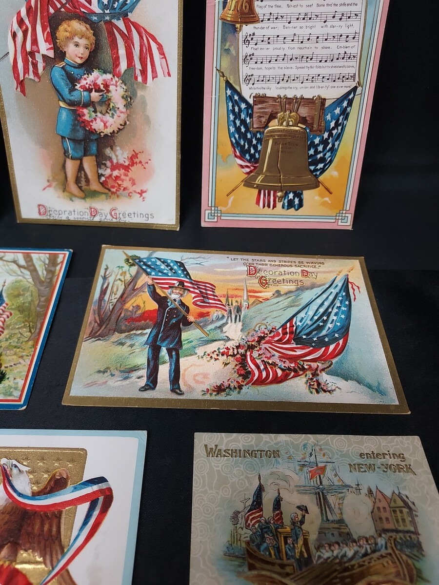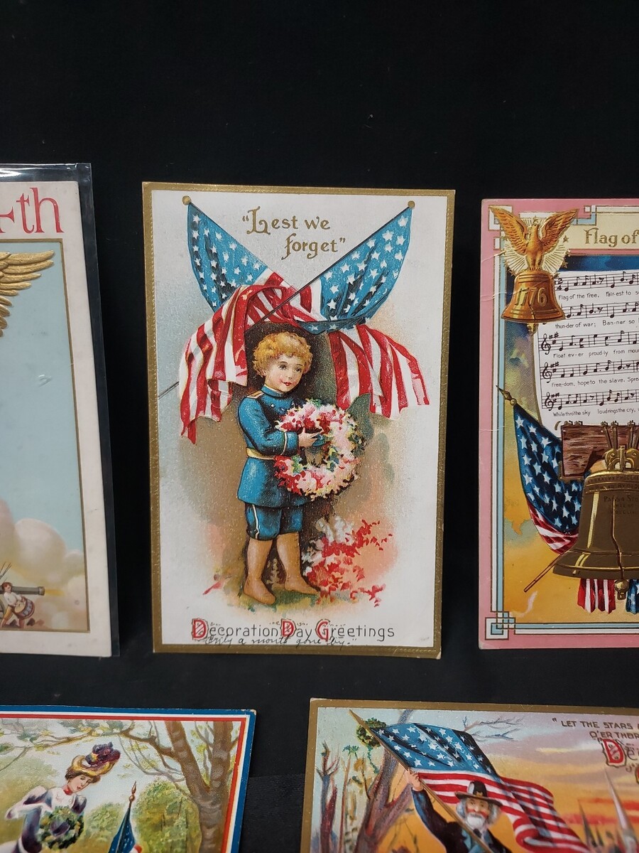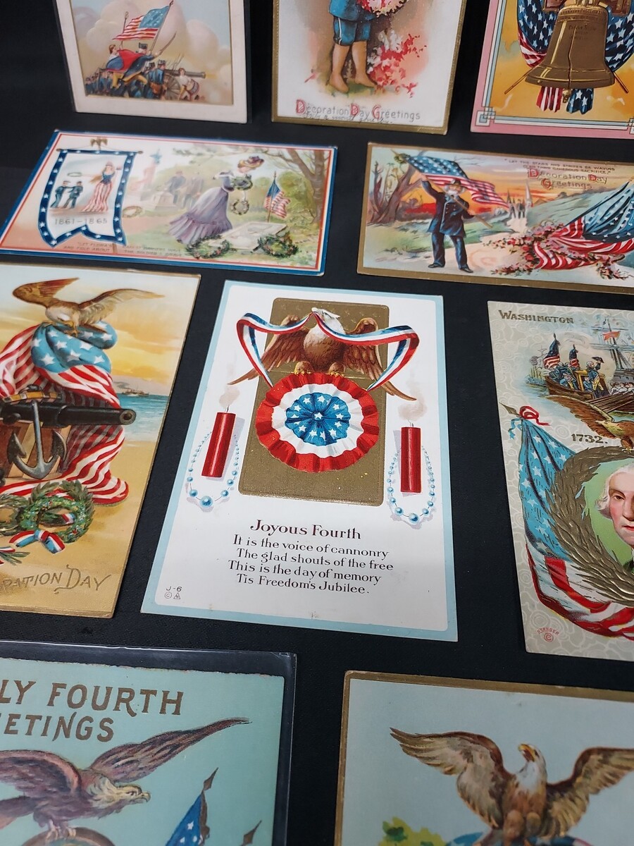 - Lot of 10 Early 1900s Military, Patriotic, American, Flag Embossed Postcards