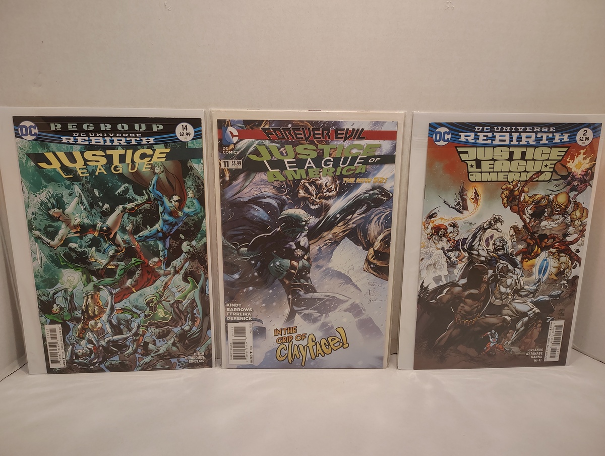 Lot of 12 Justice League Comic books all in plastic sleeves. In excellent condition.