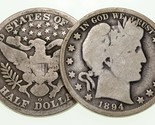 - Lot of 2 Barber Half Dollars (1895-O and 1894) in Good Condition, Natural Color