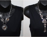 - Lot of 2 Boho Asymmetric Chunky Glass Silver Metal Rope Necklace Silver Tone