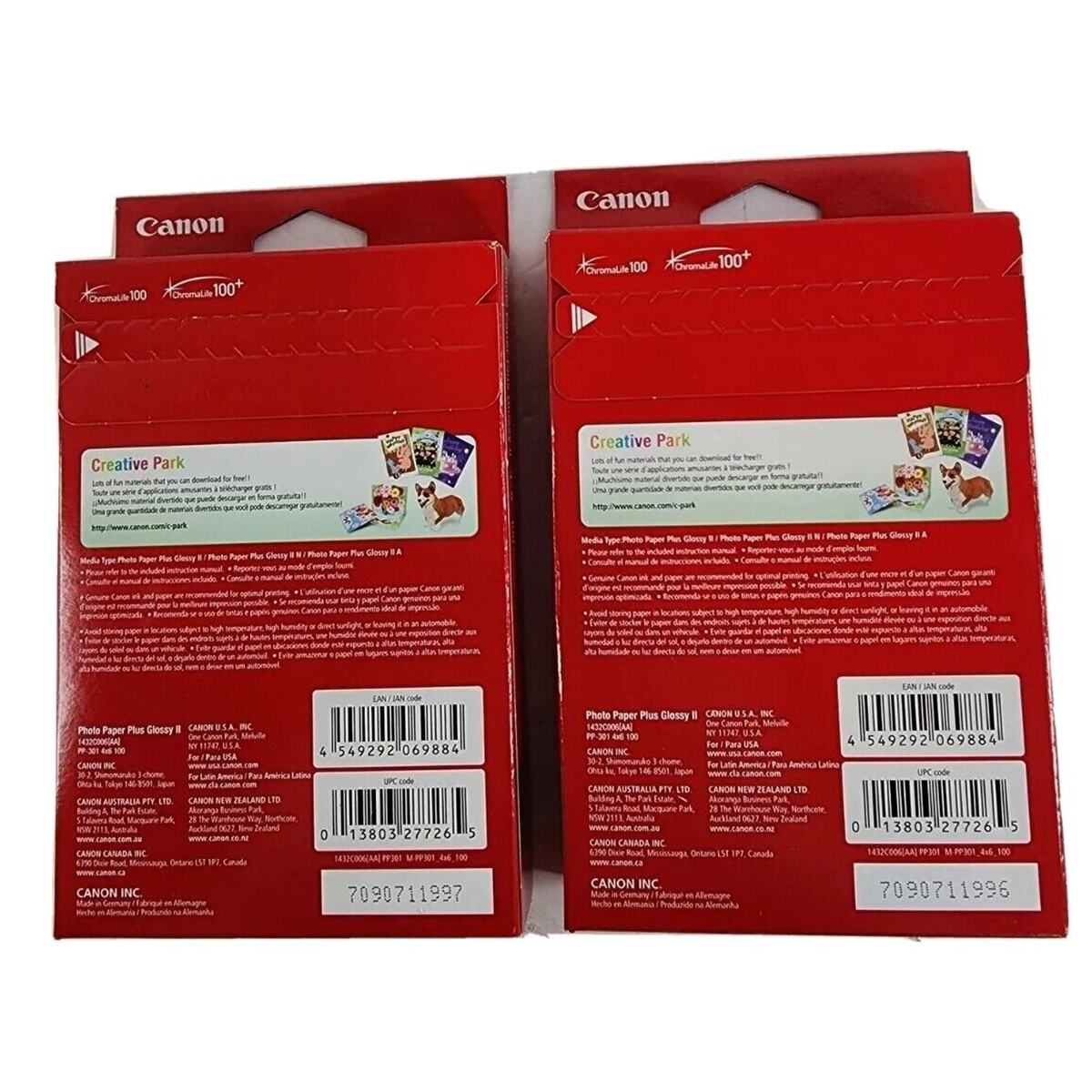 - Lot of 2 Canon Photo Paper Plus Glossy II PP-301 4”x6" 100 Sheets Each - New