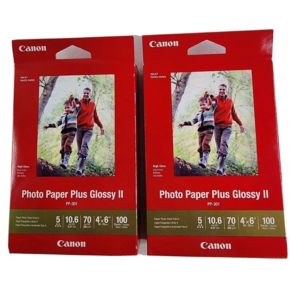 Lot of 2 Canon Photo Paper Plus Glossy II PP-301 4?x6" 100 Sheets Each - BRAND NEW IN SEALED BOXES. SAME DAY SHIPPING