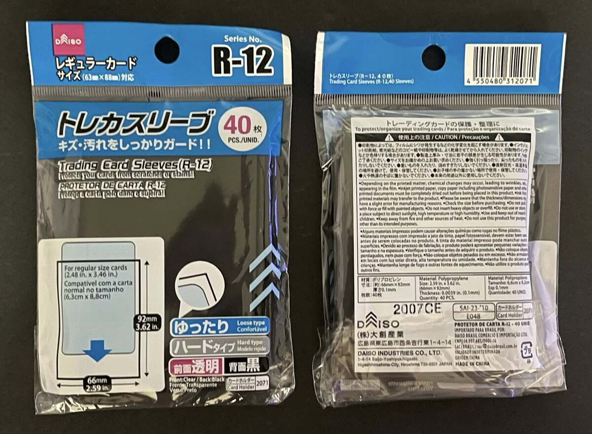 - Lot of (2) Daiso Trading Card Sleeve R-12 Regular Size (2.59 in. x 3.62 in.)