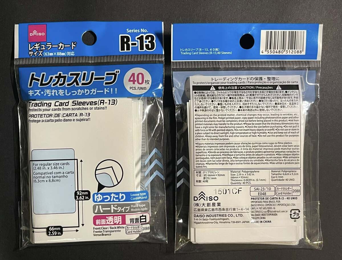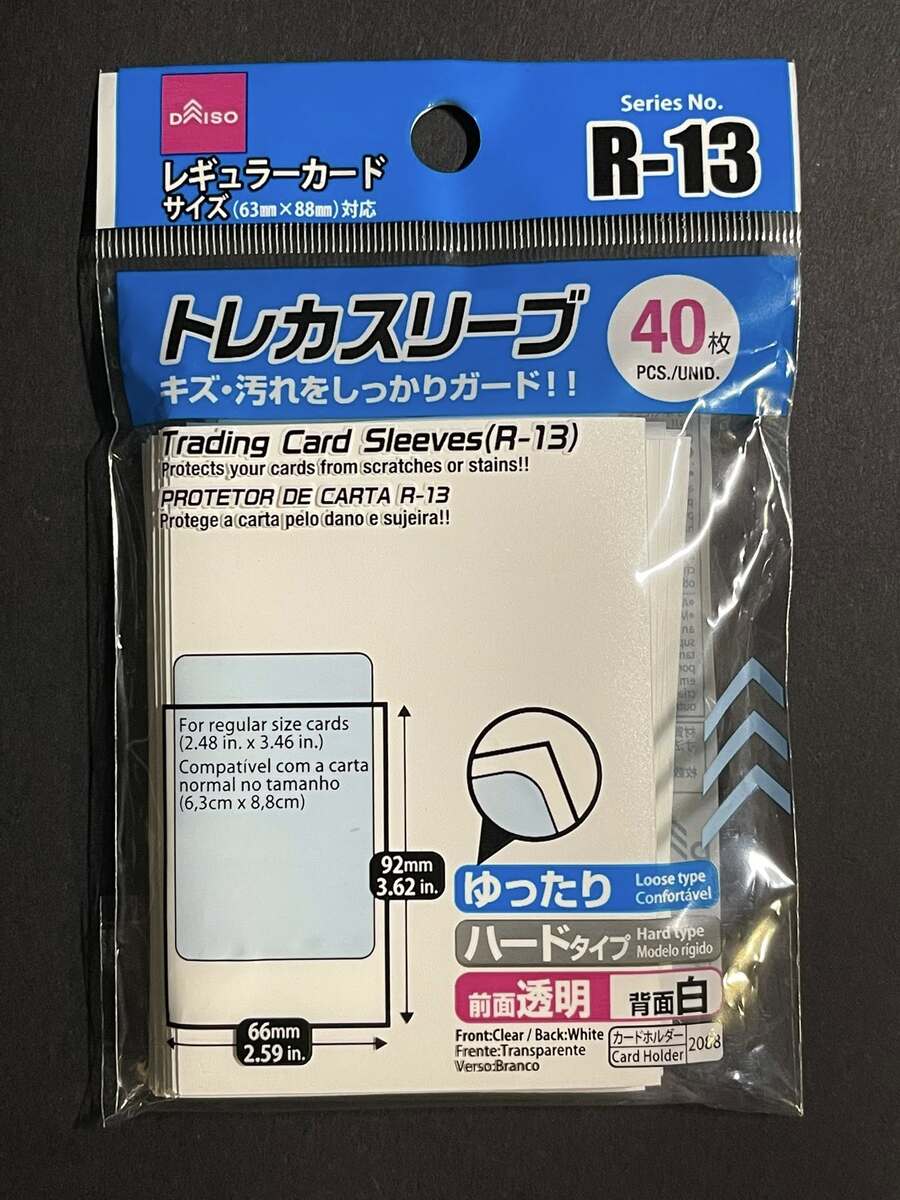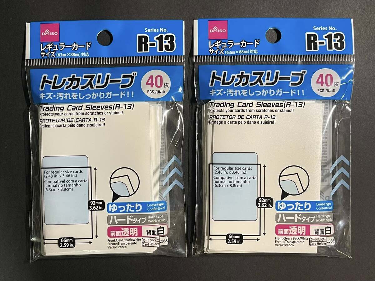 - Lot of (2) Daiso Trading Card Sleeve R-13 Regular Size (2.59 in. x 3.62 in.)