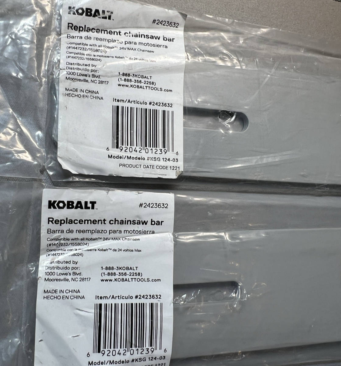 Lot of 2 Kobalt 12" Replacement Chainsaw Bar 40V Max Brushless KSG 124-03