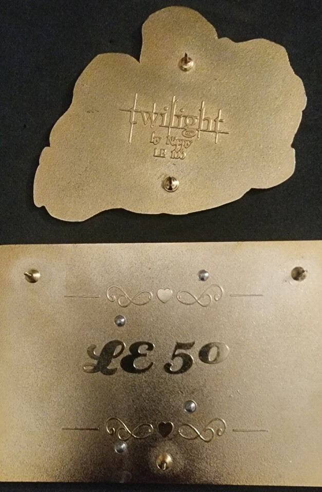 Fantastic Lot of (2) Twilight Limited Edition Enamel Pins. (1) Pin is Stamped Limited Edition 100 by Nippy and (1) Pin is Stamped Limited Edition 50 with No Maker name.