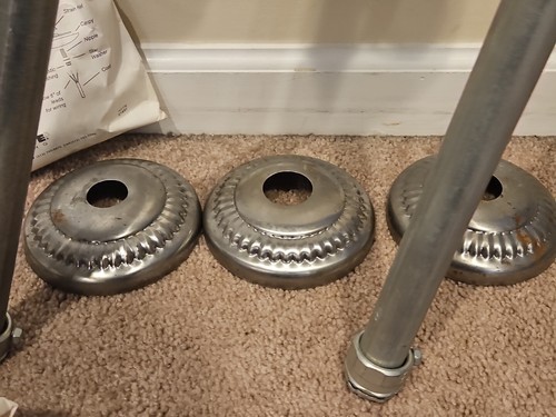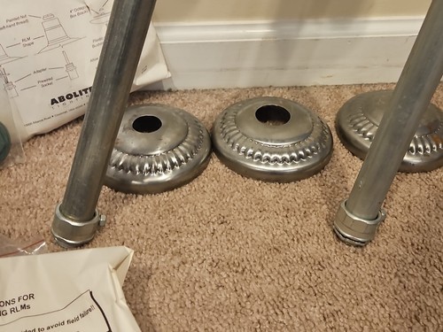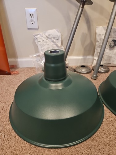 I believe these are new and unused. Pictured is everything included. The light covers are 16.5'' in diameter and are green. The goosenecks are about 43.5'' in length. Everything pictured is included.