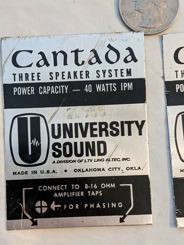 - Lot of 2 Vintage University Sound Cantada Three Speaker System Badge LTV Altec