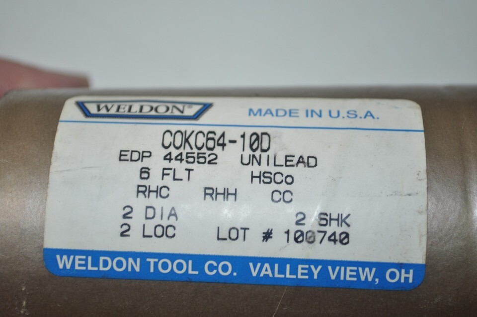 - Lot of 2 Weldon Milling Cutter End Mill RH 6 Flute 2" Dia/Shk 2" LOC COKC64-10D