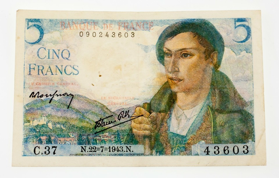 22-July-1943 5 Francs Note