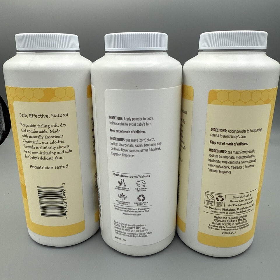 Lot of Three Burt's Bees Original Dusing Powder, 7.5 oz each