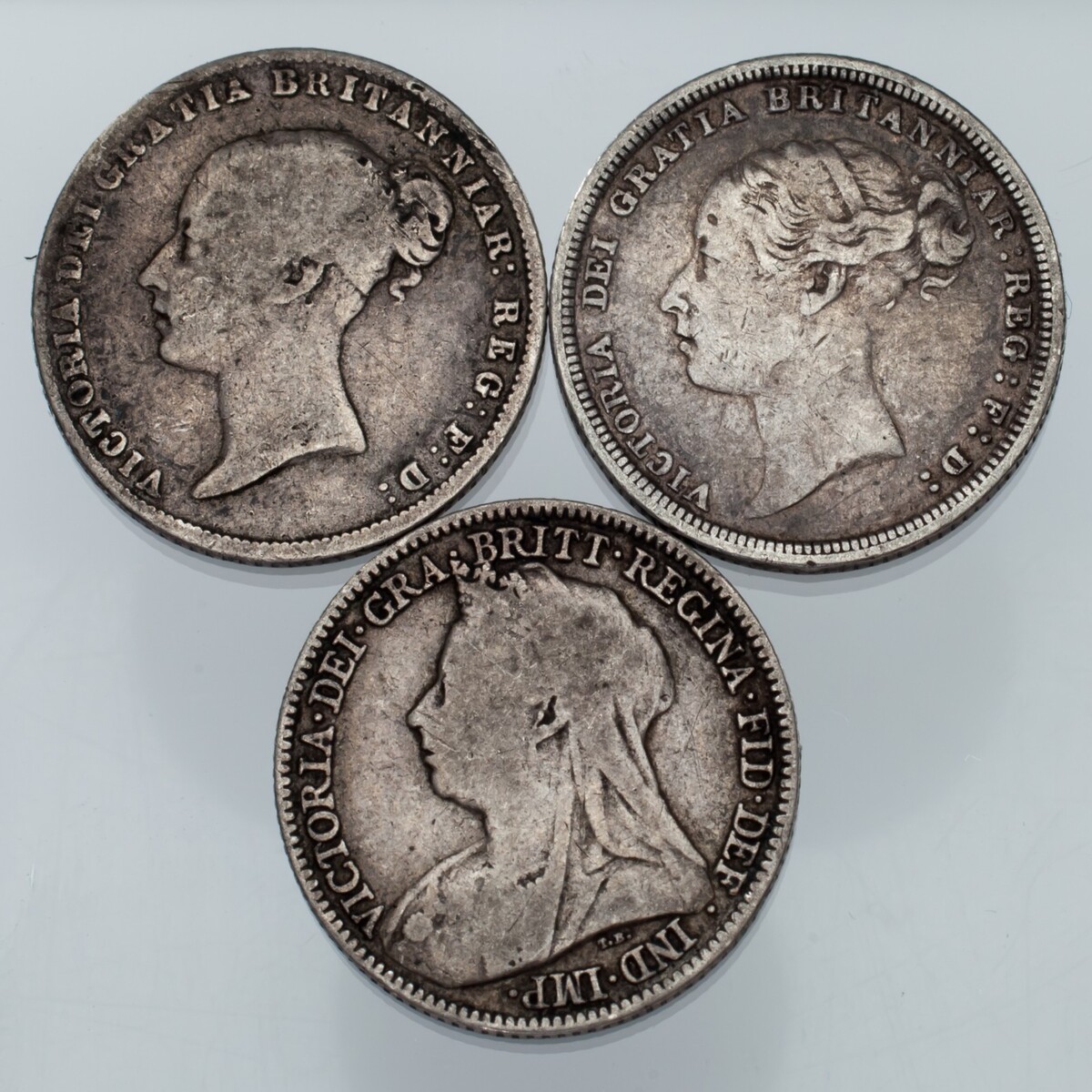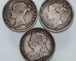 - Lot of 3 Great Britain Victoria Six Pence Coins (1860 - 1897) F - VF