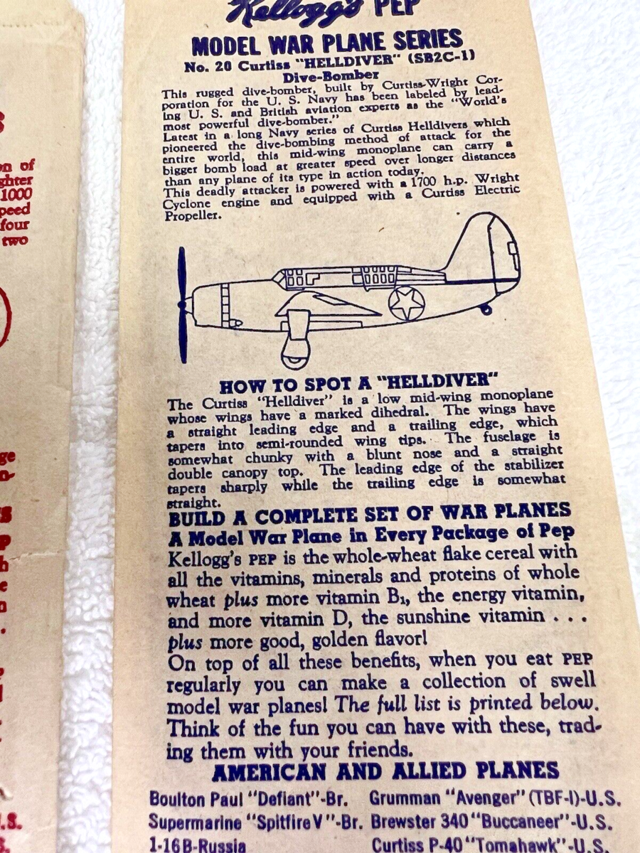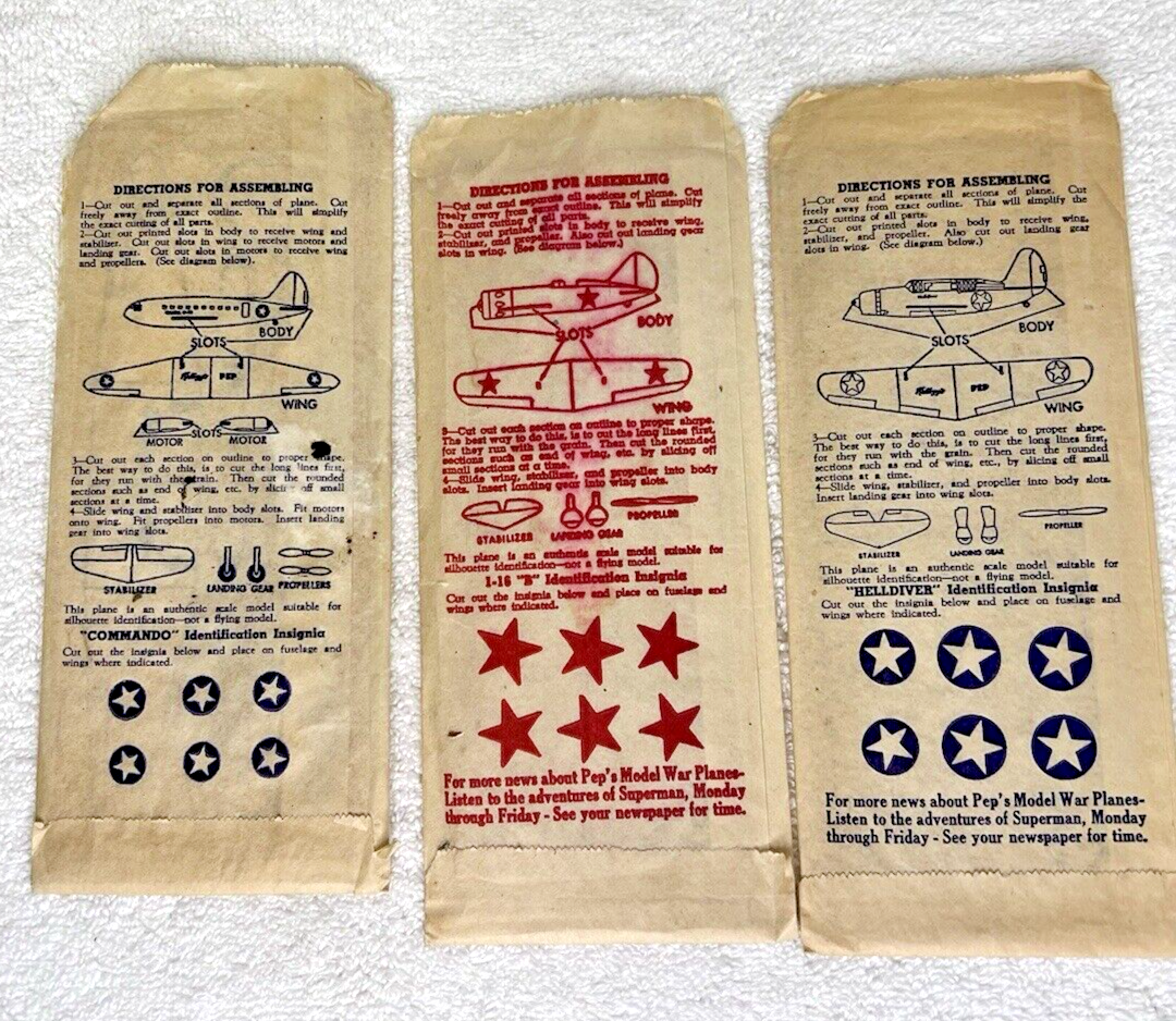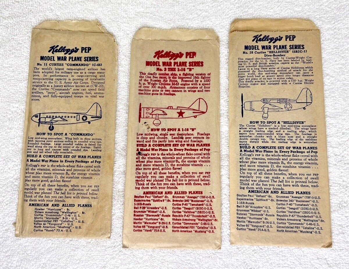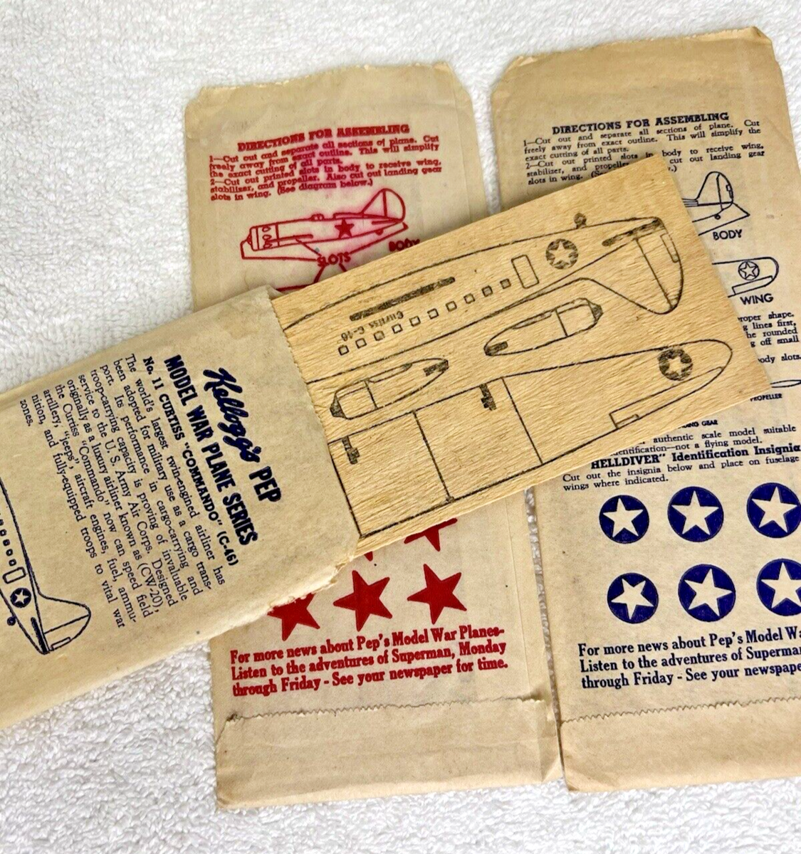 - Lot of 3 Kellogg's PEP Wood Model War Plane Series Original Envelopes Vintage
