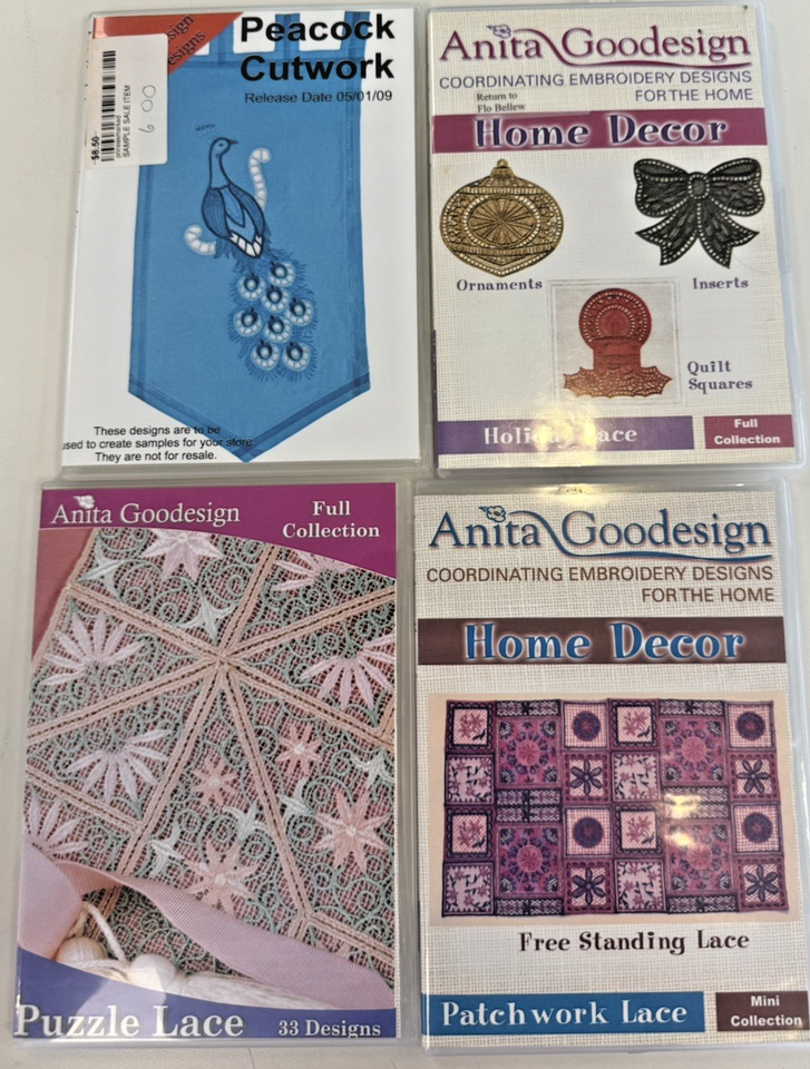 - Lot of 4 Anita Goodesign Cutwork, Lace Embroidery Designs-CDs