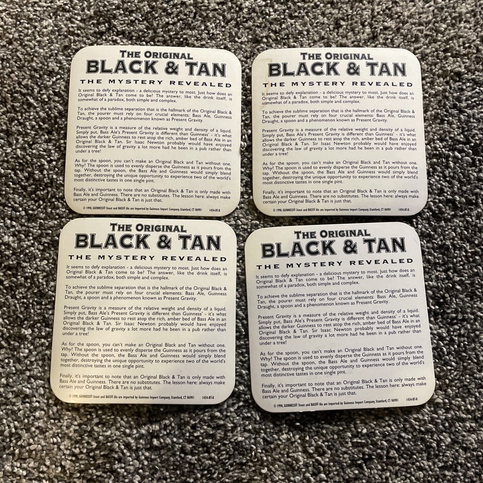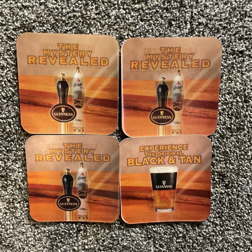 - Lot of 4 Guiness Bass Black and Tan Lenticular Bar Coasters 1998